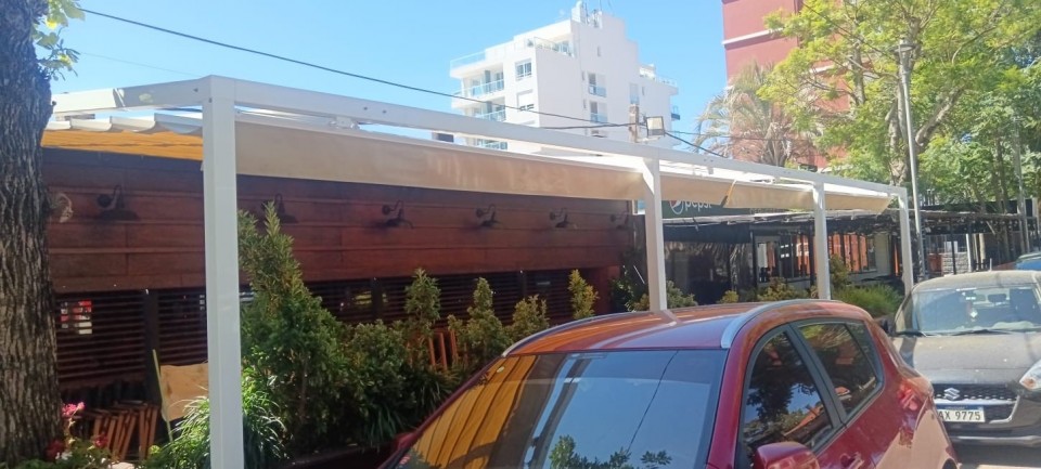 Puede incorporarse un sistema motorizado operado desde control remoto para el despliegue y cerrado del toldo como así también se brinda la posibilidad de agregar sensores de sol y viento para la protección del mismo.Estos automatismos son de la reconocida marca italiana CHERUBINI.