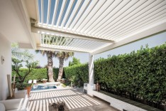 Es la última generación en sistemas de estructura de toldo plano, diseñado para crear coberturas horizontales rígidas con resistencia a todos los factores atmosféricos (sol, agua, viento y nieve).