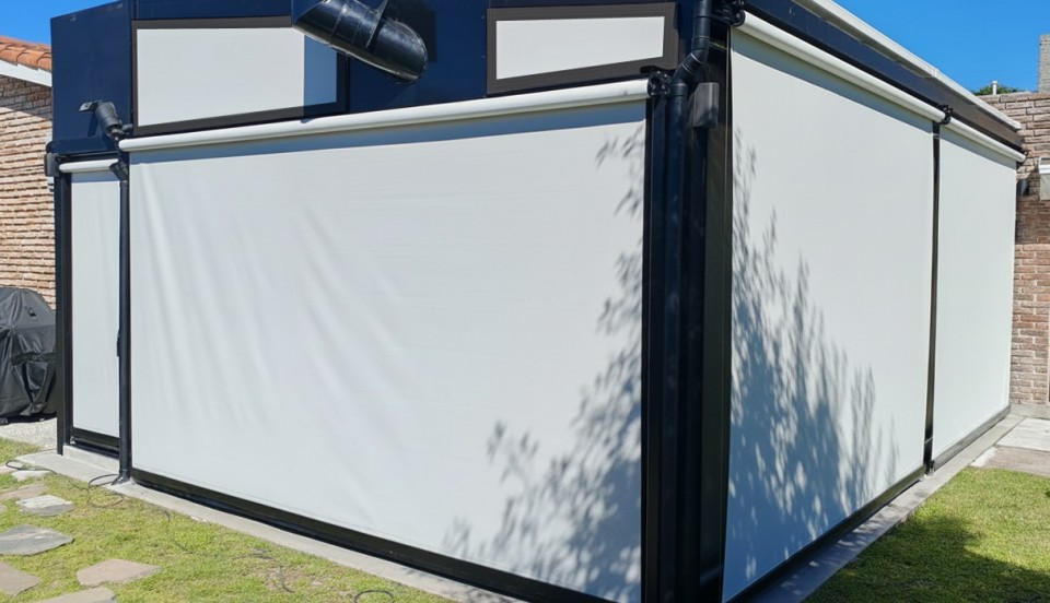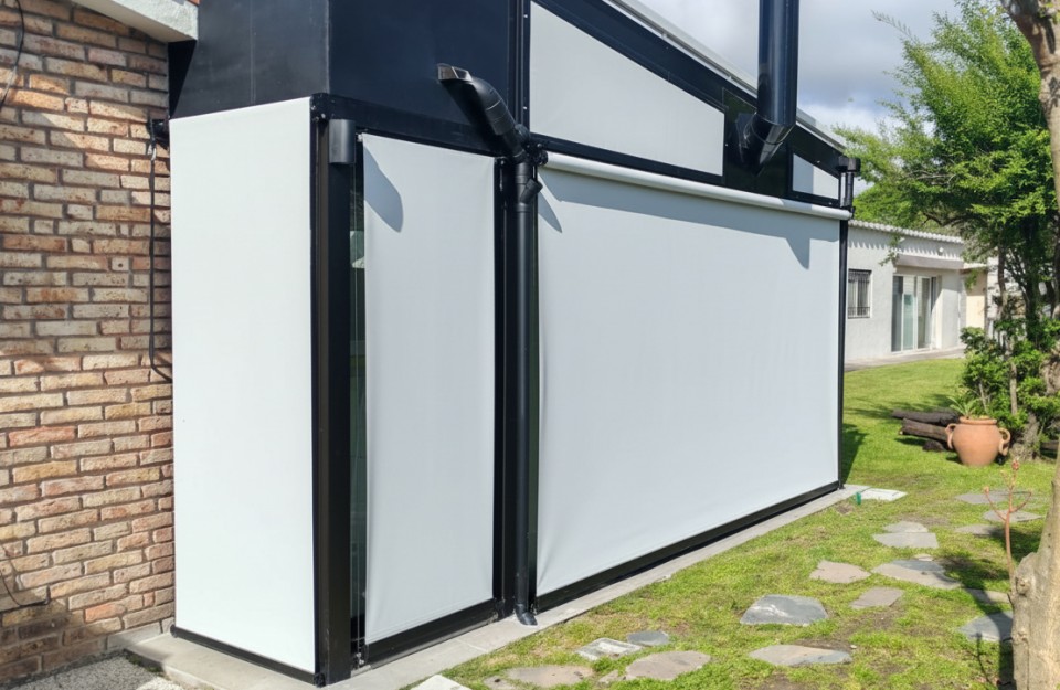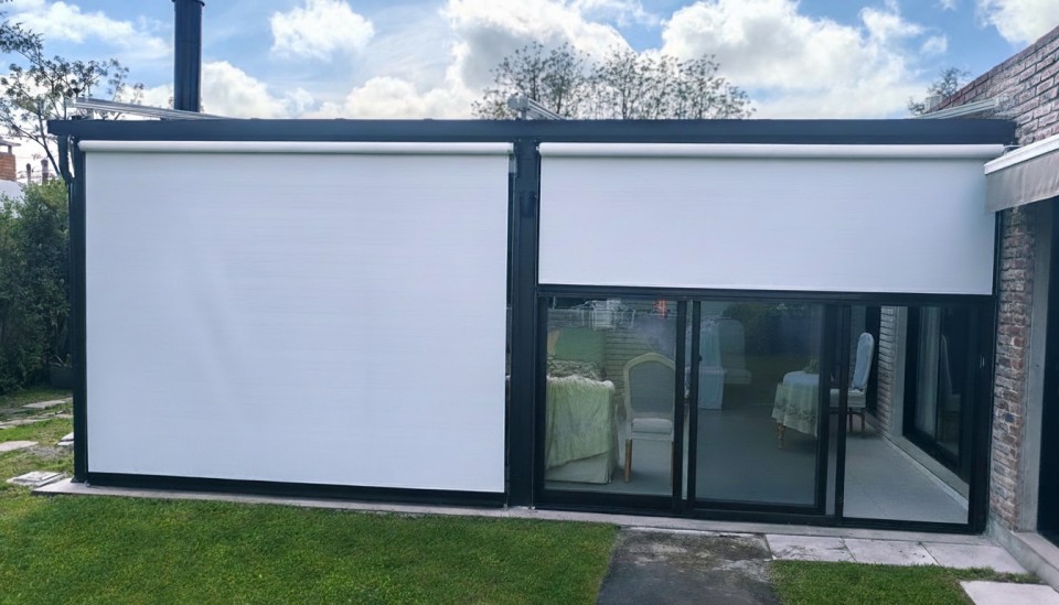 Este sistema de toldo vertical tiene 2 opciones de guiado: por varilla o por cable. Ambas opciones cumplen con la normativa europea EN-13561:2004 + A1 clase 1 de resistencia al viento, diferenciándose entre ellas por las dimensiones máximas de instalación.